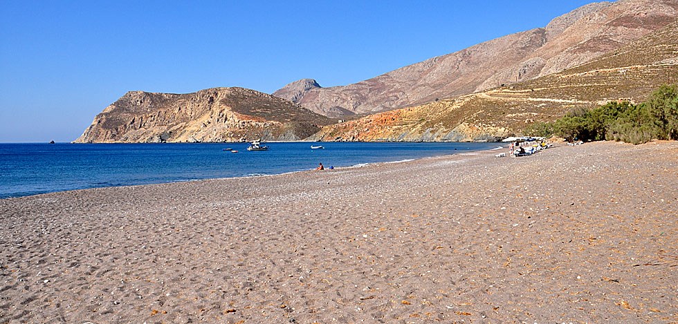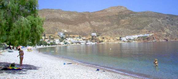 Livadia - This is the main beach of the island in front of the homonymous village and extends to the Byzantine port of St. Stephen. The beach is pebbly and has clear and clean waters.